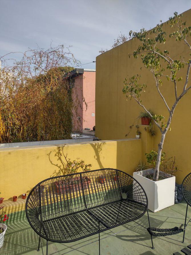 El PH consta de: ingreso por pasillo (es la unidad que se encuentra en el medio), acceso a living comedor, cocina separada bien distribuida y equipada, espacio de escritorio, dormitorio principal amplio, segundo dormitorio, baño completo y toilette. Por living comedor hay una puerta que da acceso al patio con espacio para conexión de lavarropas y posteriormente por escalera se accede a la terraza donde se podrá disfrutar de un espacio amplio con una tercera habitación grande que brinda privacidad con la planta baja. La terraza también cuenta con un cuarto de enseres.